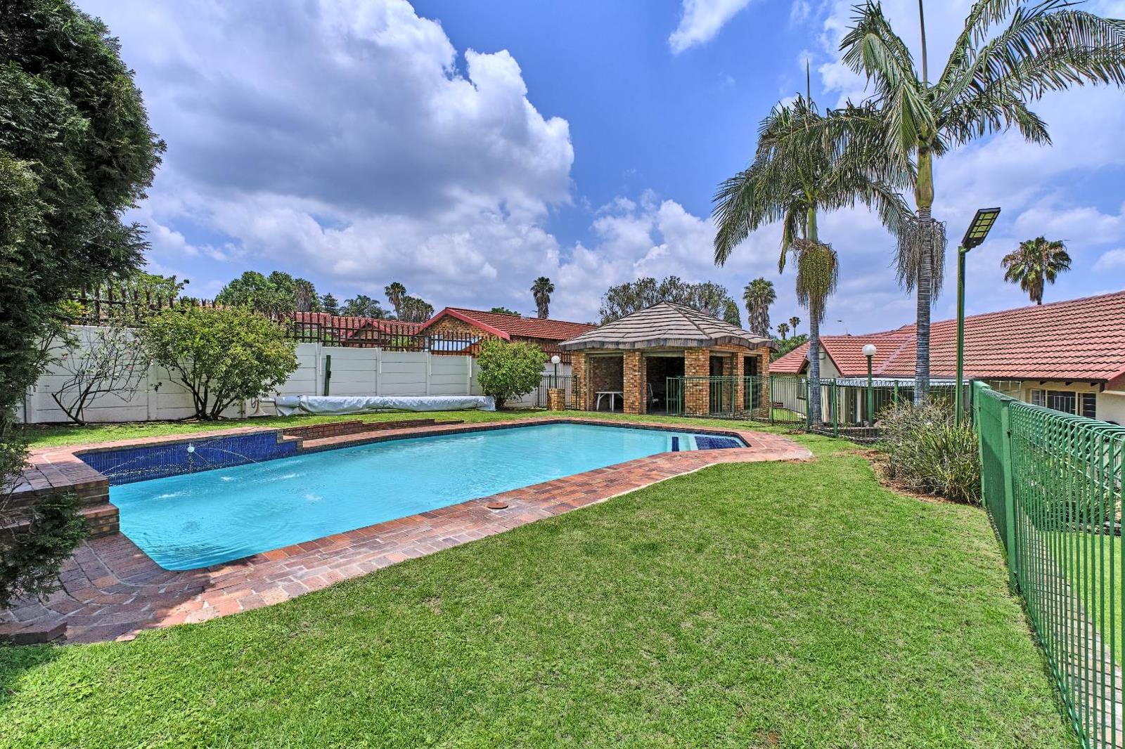 Step outside to a private oasis designed for relaxation and entertainment. The inviting swimming pool, surrounded by brick paving, is complemented by a well-maintained garden and mature palm trees. An attractive lapa with a built-in braai and a patio area provides the perfect setting for outdoor gatherings and alfresco dining. Practical features include a dedicated laundry room, additional storage, and water tanks.