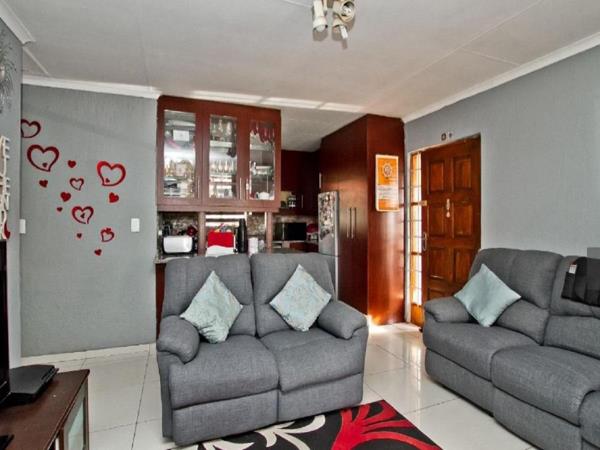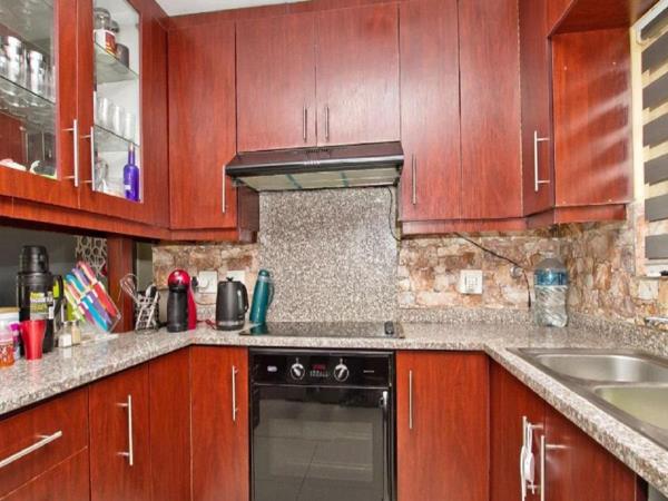 This beautifully maintained townhouse offers two spacious bedrooms with a family bathroom, open-plan lounge leading to a fully fitted kitchen. Outside, the property boasts a well-kept garden, single carport, secure parking for two vehicles, and a Rock Art pool, complemented by a Wendy house. Security is a priority, with an alarm system, burglar bars, panic button, 24-hour guarded access, and CCTV. Currently owner-occupied with potential rental income of R11,500 per month, this property is sold voetstoots, with the south boundary wall cracked and three broken windows, repairs being the responsibility of the purchaser.