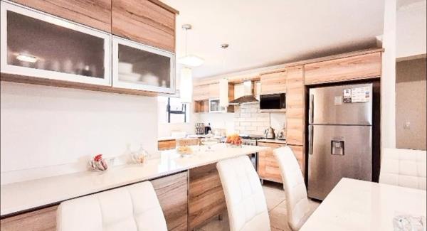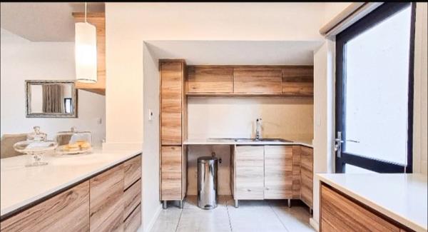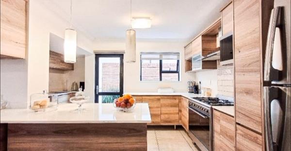 Step into a modern open-plan living area featuring a designer kitchen, a gas stove and oven, and a seamless flow to an entertainment space with a built-in braai perfect for hosting family and friends.