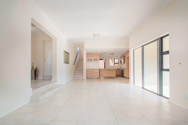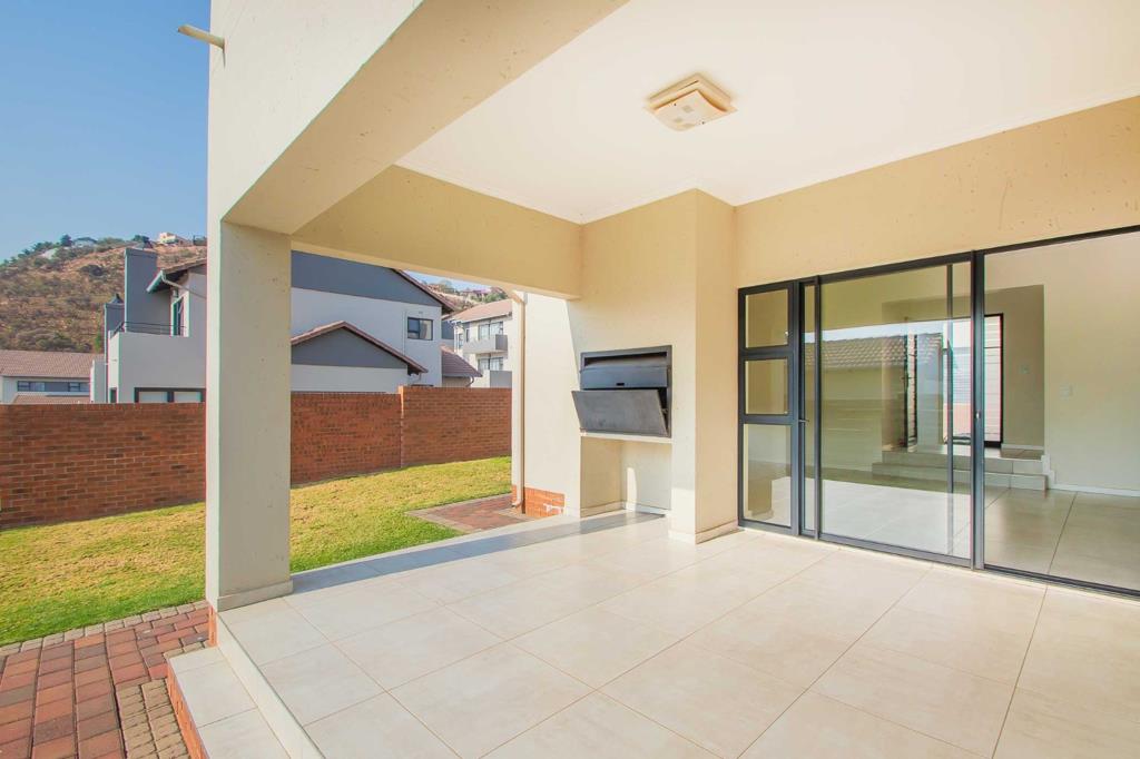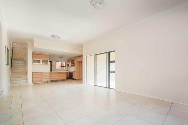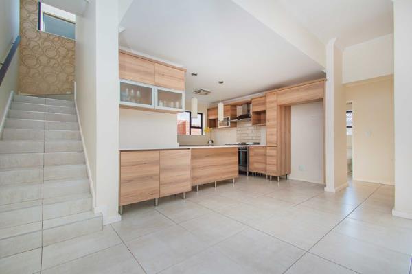 This home combines comfort, style, and modern sustainability. It features an open-plan living and dining area, a well-equipped kitchen with granite tops and a gas stove, and an outdoor patio with a built-in braai overlooking a manicured garden. The ground floor includes a spacious guest bedroom with a full bathroom comprising a shower, basin, and toilet. Upstairs, there are three bedrooms with built-in cupboardstwo sharing a full bathroom and the main suite with a private balcony and en-suite bathroom.