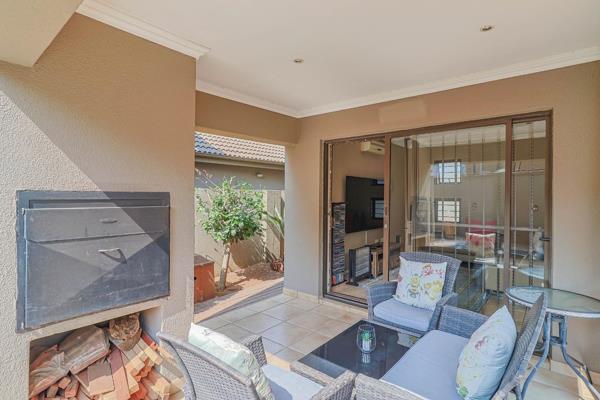 Covered patio with a built-in braai, overlooking a sparkling splash pool perfect for entertaining