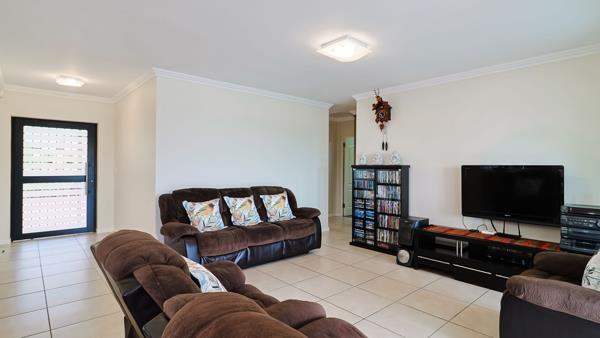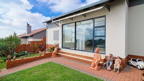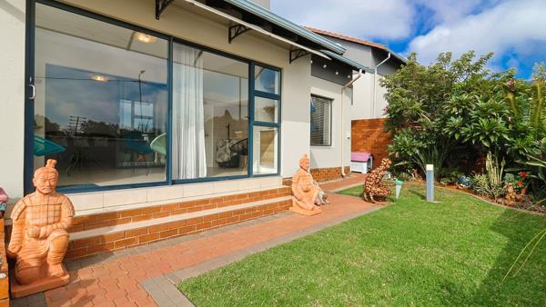 The property includes three well-proportioned bedrooms and two bathrooms, with one being an en-suite, ensuring privacy and convenience. The home is designed for practical living, featuring crown molding and a wheelchair-friendly layout. Outside, the residence presents excellent kerb appeal with a modern exterior, well-maintained tiled roofs, and a spacious paved driveway leading to two garages. The meticulously landscaped garden, complete with a braairoomsunroom, offers a serene outdoor retreat perfect for relaxation or entertaining, and pets are welcome.