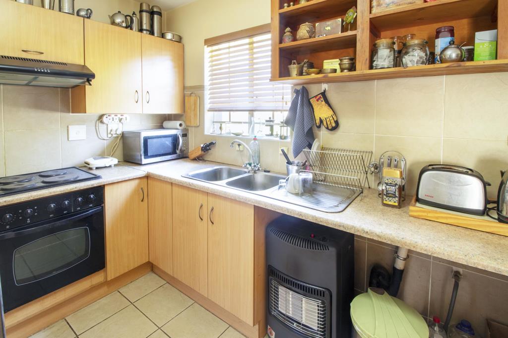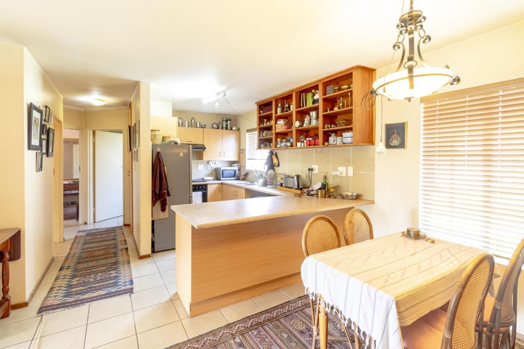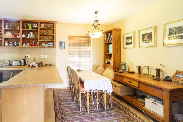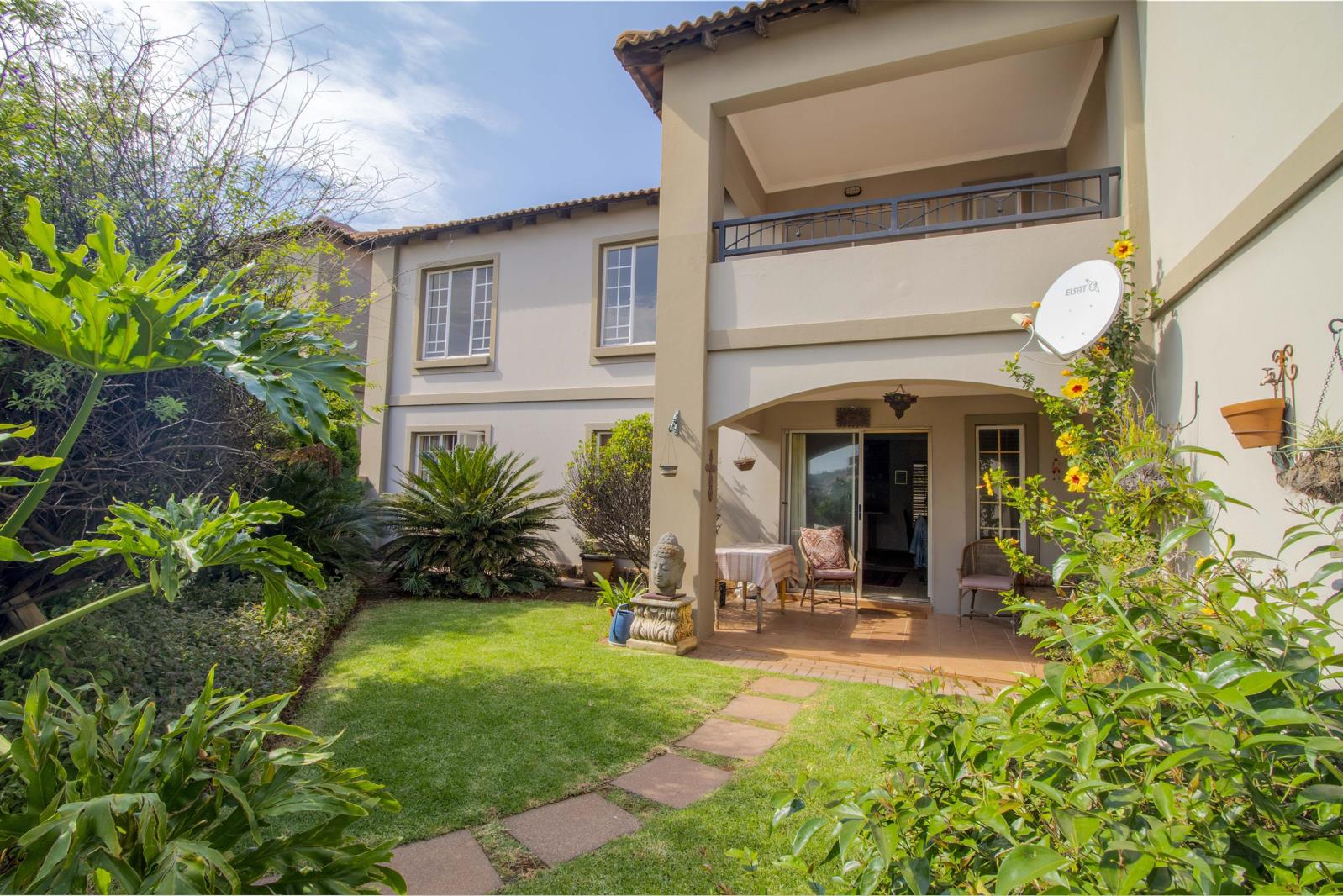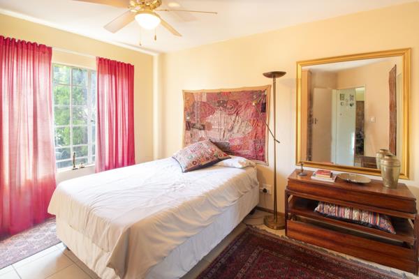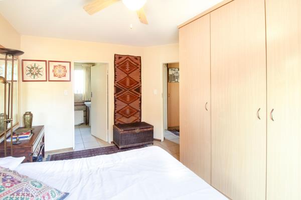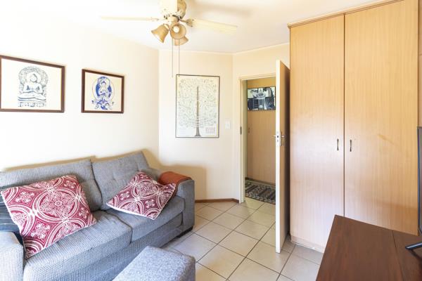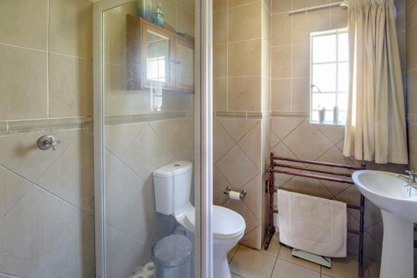 The apartment is on the ground floor with its own little garden. The apartment offers two tiled bedrooms with built in cupboards, two tiled bathrooms main en-suite, a spacious tiled lounge and dining room with a door leading to the covered patio overlooking your garden and a modern kitchen with a stove, extractor fan, scullery, breakfast nook and a laundry.