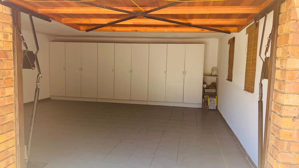 The double garage, positioned conveniently on the same level as the home, is fully tiled and fitted with cupboards for extra storage because details matter.