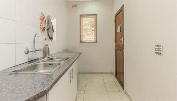 Step outside to enjoy a large covered patio, a refreshing swimming pool, and a beautifully landscaped garden. The property also includes a domestic room with its own bathroom, an interleading double garage, and ample secure visitor parking. Security is a top priority, with burglar bars, security gates, an alarm system, and an electric entrance gate ensuring peace of mind.