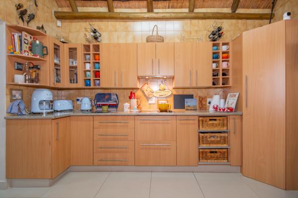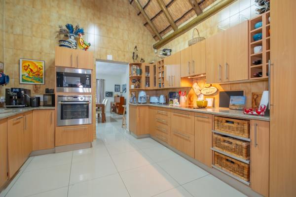 Outdoors, enjoy your very own entertainment haven a sparkling swimming pool and a thatched lapa, perfect for gatherings with friends and family.