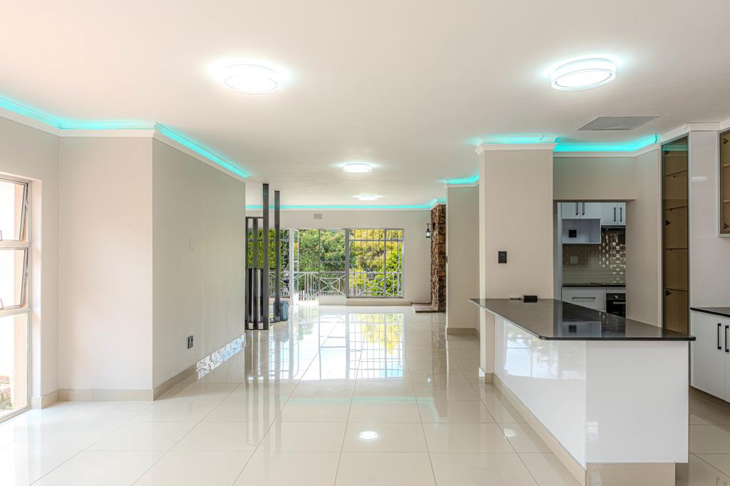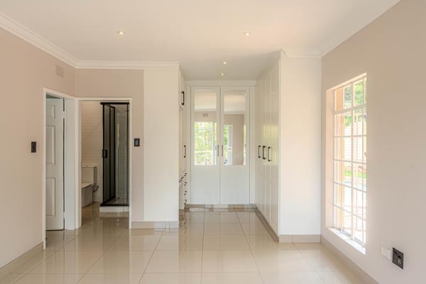 The home offers three spacious bedrooms. The first includes built-in cupboards, the second features a modern en-suite bathroom, and the main bedroom serves as a tranquil retreat with ample cupboard space, a walk-in closet, and a stylish en-suite.