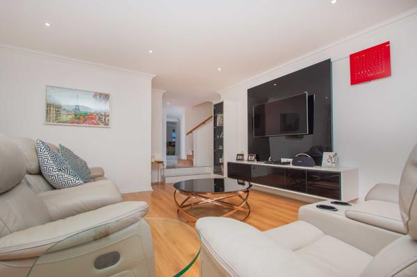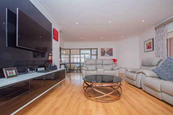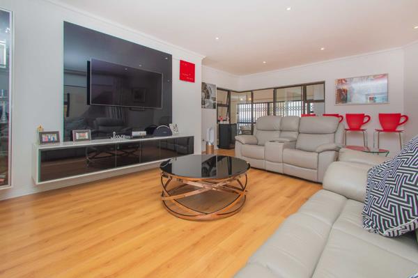 4 large, modern bedrooms, each featuring downlighting, contemporary cornices and trim, and built-in cupboards main features walk-in closet. Upstairs, the double-volume retreat awaits complete with a pajama lounge, space for a king-sized bed, and access to a secluded balcony fitted with a retractable awning offering stunning views.