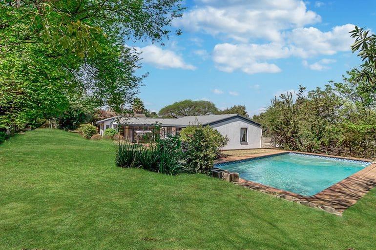 Externally, the property boasts a private garden, a refreshing swimming pool, and a spacious patio, creating an ideal setting for outdoor relaxation and social gatherings. Practical features include a double garage and additional parking for up to four vehicles. The property further benefits from a separate flatlet, staff quarters, domestic rooms, outside toilets, a laundry area, and an alarm system with a security gate, ensuring peace of mind. Pets are permitted, making this a truly family-friendly environment.