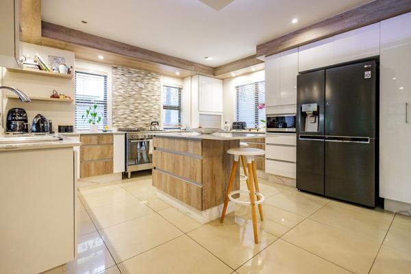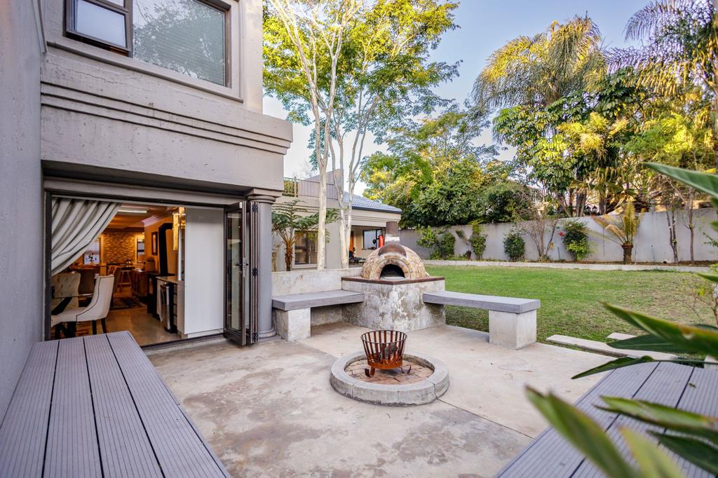 The new, modern kitchen is a chefs dream, with abundant storage and ample space to prepare everything from casual snacks to delicious meals while overlooking the open plan living spaces. Outdoor entertaining is effortless with a large, covered patio overlooking the northern side of the house, where a refreshing pool and a stylish braai area set the scene for summer, pool parties, and lively gatherings. A charming boma and pizza oven set in the large back garden encourage conversations under the stars and is just a step away from the stylish bar. The living areas flow seamlessly and create a welcoming family space warmed by the wood burning fireplace. Three of the four stylish ensuite bedrooms offer private retreats. The kids bedrooms both have built in study desks and share an interleading lounge and covered balcony the perfect spots for hanging out, gaming sessions, or chilling with friends. The private main bedroom, with its cozy gas fireplace and private balcony, serves as a relaxing sanctuary after a busy day.