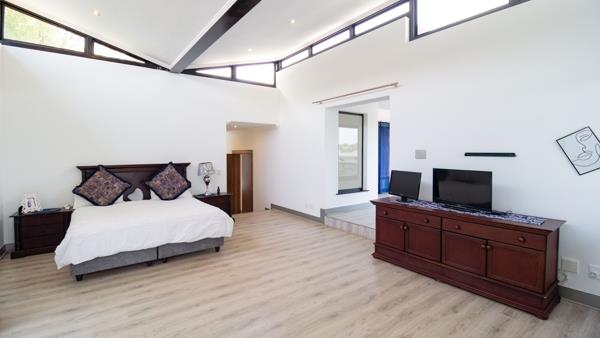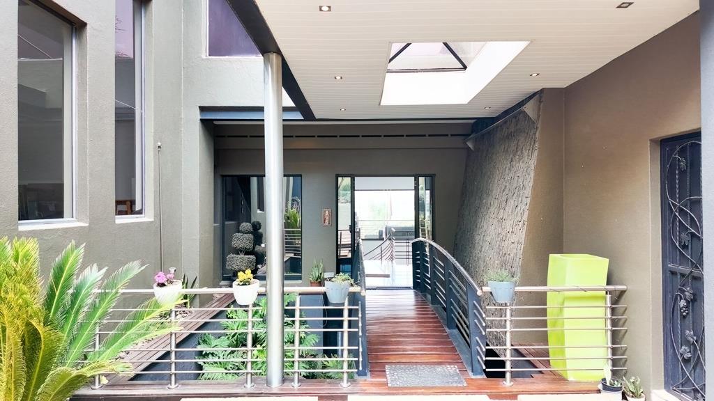 Step into refined elegance with this exceptional modern home offering breathtaking panoramic views over the entire golf course and prestigious estate. Boasting four spacious en-suite bedrooms, jacuzzi, outdoor shower, and a study, his residence is designed for both comfort and sophistication. The heart of the home features a sleek, open-plan kitchen (with large scullery/laundry) flowing into the lounge area, and out onto a balcony with uninterrupted vistas.