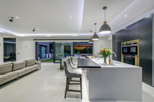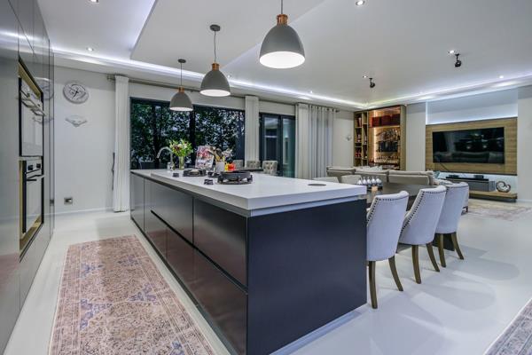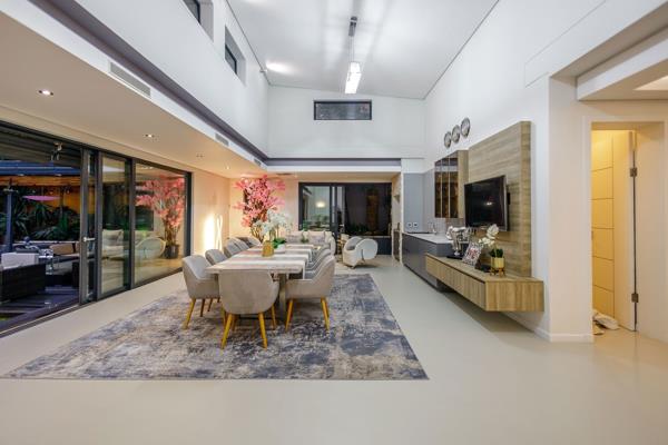 A gorgeous, modern home exuding luxury at every turn. This stunning property boasts high-end finishes and meticulous attention-to-detail throughout. As you step inside, youre greeted by an expansive, light-filled, open concept living space with soaring ceilings and elegant designer touches. The kitchen is a true masterpiece, featuring top-of-the-line appliances, a walk-in fridge, custom cabinetry with soft touch hinges, draw fillers and multiple prepping areas. The contrasting countertop and an oversized centre island are beautifully emphasised with strategic lighting. A plush cinema room is designed to offer the ultimate movie-watching experience complete with soft lighting to create an immersive atmosphere. The meticulously crafted staircase ceiling mesmerises with its wave-like pattern evoking a sense of fluidity and movement creating a striking visual impact bathed in the ambient lighting of a chandelier. The double volume main bedroom is completely private and has a wraparound balcony, a boutique style walk-in closet with ample space for shoes and accessories is well lit and designed to make it easy to stay organised. The en-suite bathroom is a sanctuary of relaxation with marble countertops, a sleek double vanity, a luxurious soaking bath, a spacious double shower and a pedicure station.