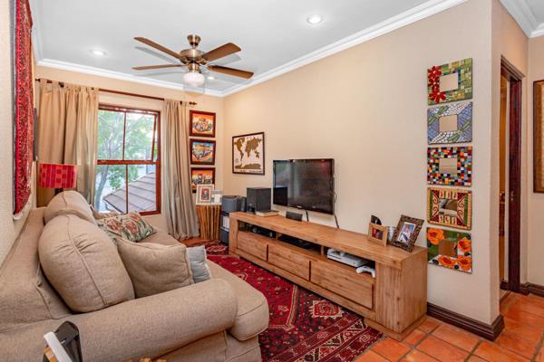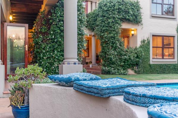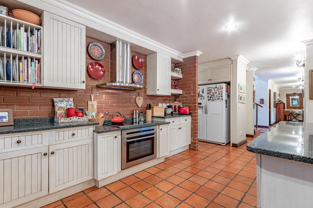 Farm style living with the convenience of modern design. Set in an exclusive and quiet street with only two neighbours this beautiful family home has a well-placed, inviting boma with pretty views over the landscaped garden and pool. A particularly distinctive feature is the bygone era stoep and that all the living areas open onto and an extended side porch with the most aromatic jasmine covering the columns. The farm-style kitchen features a separate scullery and a spacious center island, creating an ideal gathering spot that overlooks the dining room and double-sided gas fireplace. This open layout allows for easy interaction with family throughout the flowing living spaces. The home showcases impressive high ceilings with beautifully exposed trusses, creating a sense of spaciousness and warmth, while natural light pours in through the wall-to-wall stacking doors. Terracotta tiles add a rustic yet sophisticated touch, enhancing the inviting ambiance. With four generously sized bedrooms, including two en-suite, theres plenty of room for the entire family. The main bedroom is especially spacious and has ample room for a private lounge. Additional spaces include a dedicated study or home office, a versatile hobby room, and a cozy pyjama lounge. The enclosed balcony offers a perfect retreat, allowing you to unwind with a book while enjoying views of the landscaped garden and green belt. Step outside to discover a meticulously maintained landscaped garden, complete with a delightful swimming pool and boma areaperfect for entertaining and enjoying evenings under the stars. The covered patio, featuring a built-in braai, ensures convenient outdoor gatherings.