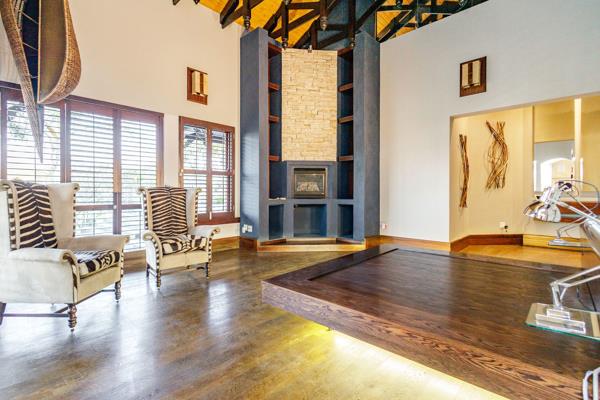 The luxurious main en-suite bedroom offers a private retreat with its own patio, cozy fireplace, elegant dressing room, jacuzzi, and spa-like bathroom. Three additional en-suite bedrooms each feature soaring ceilings, refined finishes, and views over the pool and entertainment area. Completing the accommodation is a beautifully finished self-contained flatlet, perfect for guests or extended family.