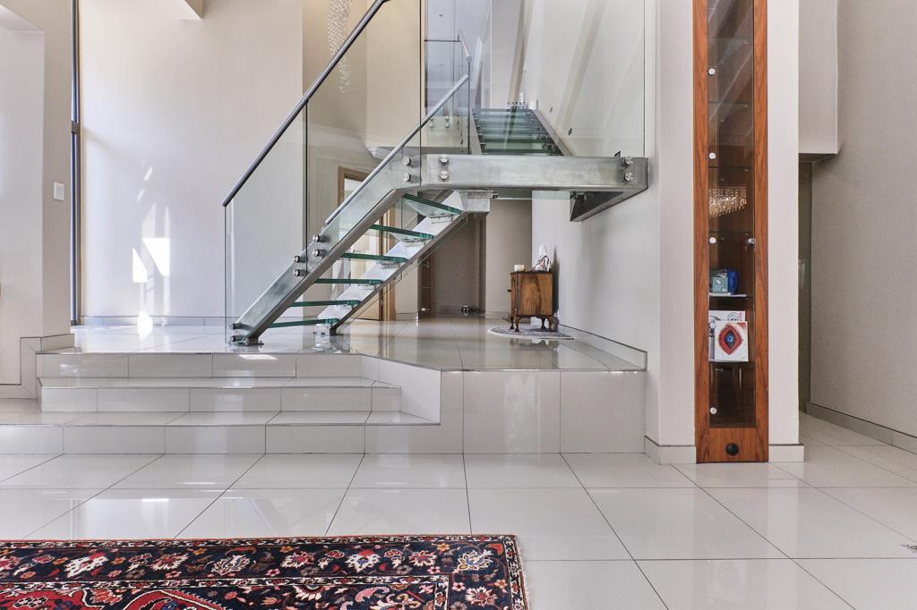 At the heart of the home lies a sleek, modern kitchen that connects beautifully to the surrounding living and entertainment spaces. It includes a convenient server window to the covered patio, which features a built-in braai and direct access to the fitted bar that can be enclosed with aluminium stacking doors.