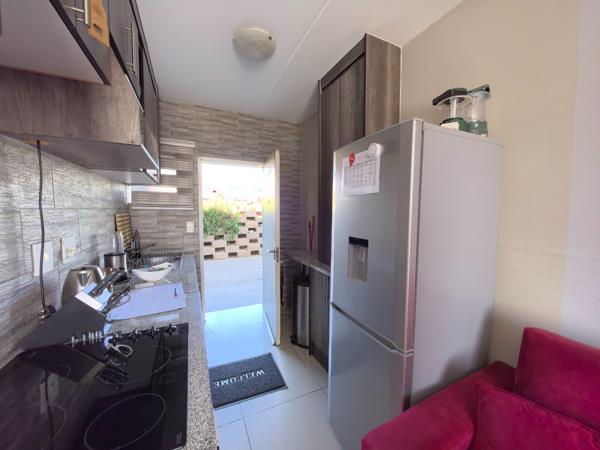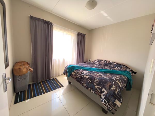 This ground-floor apartment in Ridgeview Complex is perfect for first-time buyers, small families, or investors. It features a modern kitchen with granite tops, an open-plan lounge, two bedrooms, and a stylish bathroom. Enjoy easy access from your parking bay, 24-hour security, communal gardens, childrens play areas, and a braai areaall close to schools, transport, and main routes.