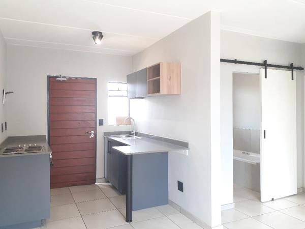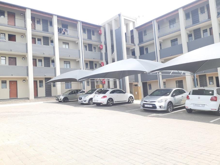 The apartment features a fitted open plan kitchen, designed for both style and functionality. The kitchen flows seamlessly into the lounge area creating an airy atmosphere. The lounge area is well lit creating a cozy environment to relax after a long day. The layout offers an inviting space for family gatherings or casual get together with friends.
