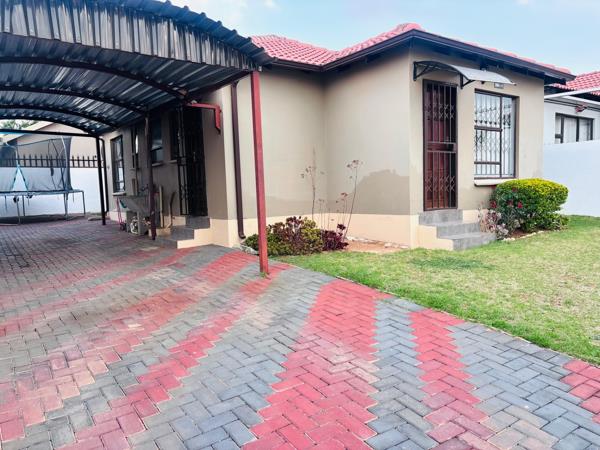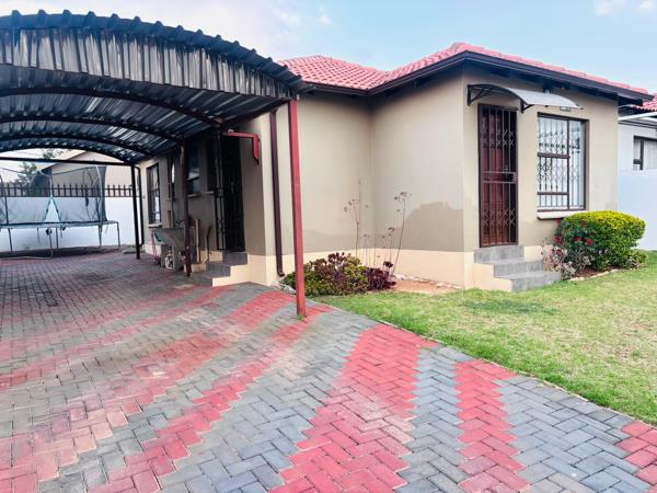 This neat as a pin alone standing family home with all 3 bedrooms fitted with wardrobes, lounge, fully fitted kitchen with stove, separate bathroom and toilet, fully tiled and neat, paved and other side with green grass garden, carport for 3 cars,wendy house (storage) fully walled with lockable gates and burglar bars and secure property for R920 000 selling price in Fleurhof ext 24