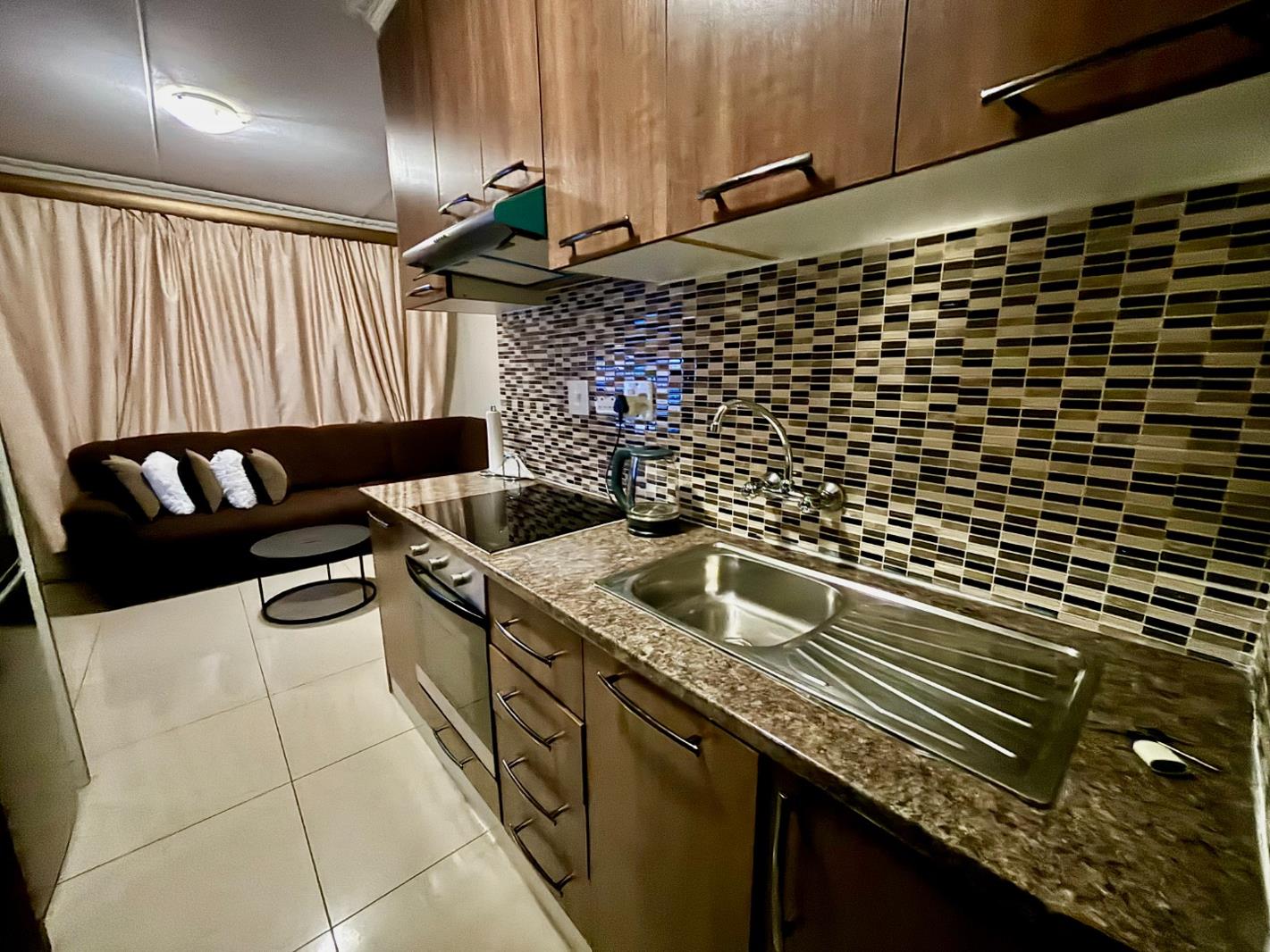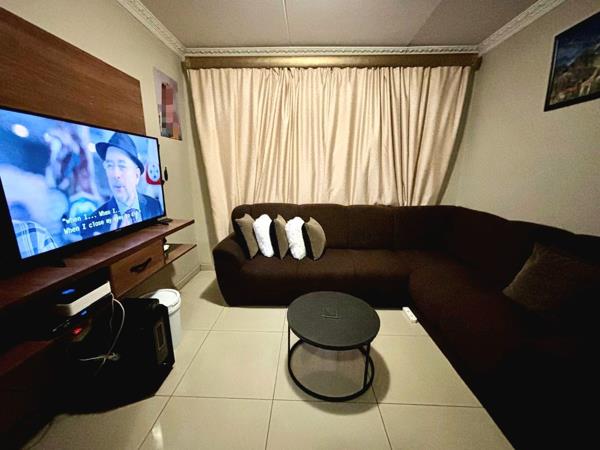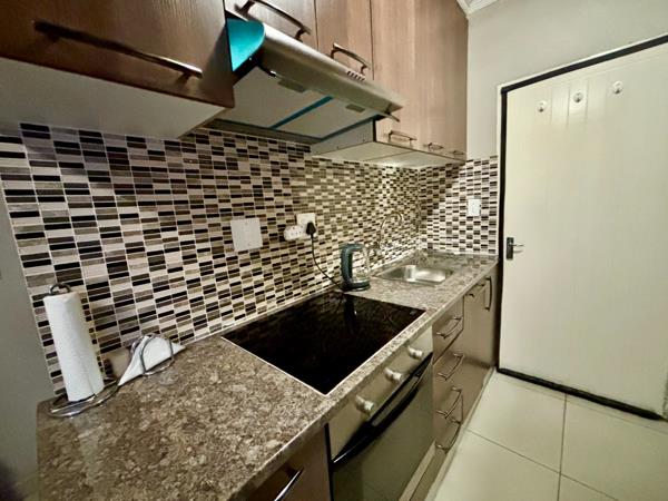 This inviting two bedroom ground floor unit in the sought after Callaway Lofts complex in Fleurhof is perfect for first time buyers, professionals, small families or investors. The home is designed for comfort and style featuring a spacious and well lit open plan layout making it the ideal space to relax and entertain. As you step into this lovely unit youre greeted by a beautiful kitchen with stunning backsplashes and durable granite countertops. Its equipped with a glass-top four-plate stove, an extractor, and an under-counter oven providing everything you need for cooking. The kitchen also includes a compartment for a single door fridge, adding extra convenience.