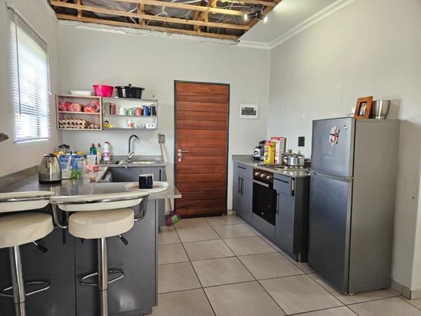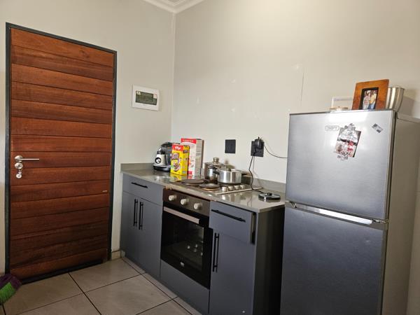 Beautiful home built with an estate style in suburban Fleurhof. Its a gem at this price point. Featuring three bedrooms and two bathrooms with a main en-suite. The massive main house gives you all room for imagination, coupled by the two other decently sized bedrooms taking each a double bed, your family would enjoy first hand comfort and privacy. The shared bathroom is in immaculate shape, In fact the whole house is laterally brand new! An open plan family lounge is main highlight in this property, spacious and airy, with the minimal decor you would not find elsewhere. This is a real example of what you have been dreaming for. The open plan kitchen with modern cu-boards and spaces for all your state to the art appliances awaits, featuring granite tops, washing machine and dishwasher connections, you can easily turn this into a smart-home. Water and electricity are prepaid, and with a solar geyser on top, you have every other expense on check and under full control.