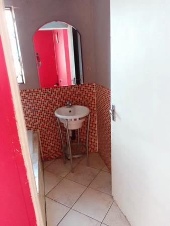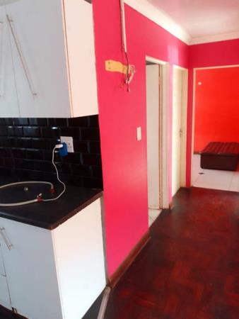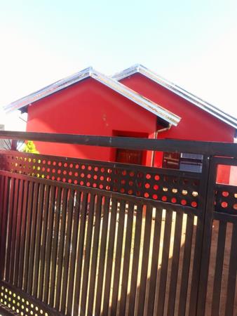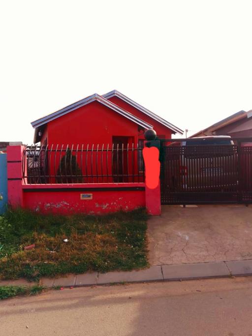 Discover this vibrant 2-bedroom, 1-bathroom residence located in the established suburban area of Fleurhof, Roodepoort. The property immediately captures attention with its striking red exterior and a modern black metal security gate, ensuring a secure and welcoming first impression. A paved driveway offers convenient off-street parking.