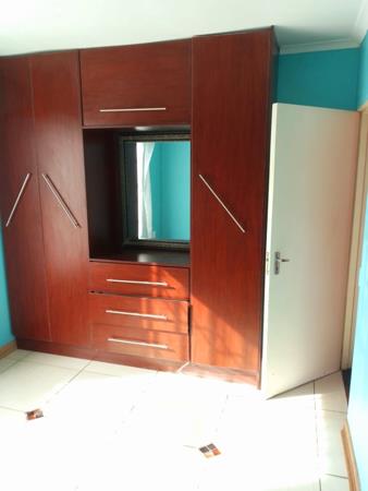 with kitchen cupboards and wardrobe and it has wooden floor in the lounge area and fully tiled in other room.