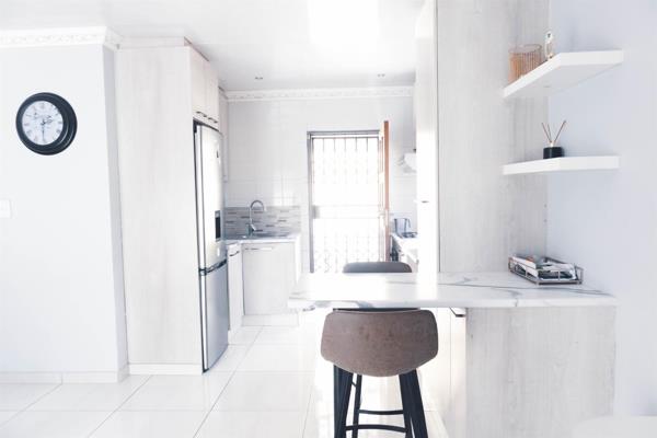 Fully tiled in the living areas, with sleek PVC ceilings and laminated wooden floors in both bedrooms, this home offers a clean, contemporary feel from the moment you walk in. The open-plan kitchen and lounge create a seamless flow, with sliding doors leading out to a tiled patio ideal for weekend chill-outs, entertaining friends, or enjoying your morning coffee.