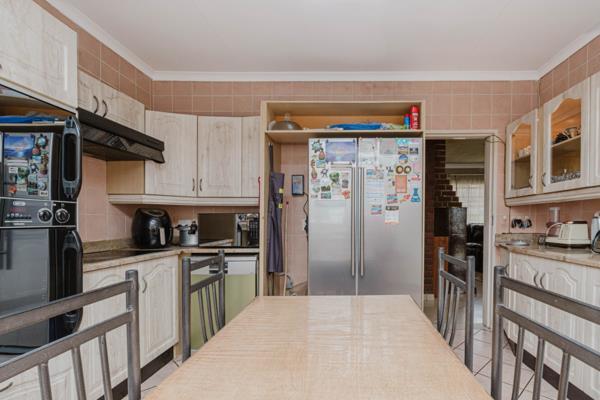 The home offers three generous living areas, perfect for both relaxed family living and entertaining. A cosy fireplace enhances the dining area, while the kitchen is fitted with ample built-in cupboards, providing both functionality and style. Underfloor heating throughout all living areas except for one ensures year-round comfort.