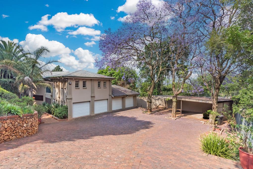 Security and convenience are paramount in this property. The entrance is secured with automated gates, and the property features automated garage doors for the massive parking capacity, which includes four garages and an additional three under roof parking , easily accommodating all your vehicles and storage needs. Further peace of mind is provided by a linked alarm system. All of this is set within a large, beautifully maintained garden that offers both beauty and tranquility.pool. JoJo tank.Fibre and Flatlet