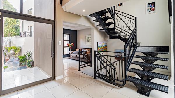 Enter through the front door into a spacious open plan LivingDining room that sets the tone for Modern Living and a tastefully designed guest bathroom and a welcoming private LoungePyjama lounge. Stackable folding doors opens onto a spacious balcony from where you can enjoy stunning views. At the heart of the home is a Gourmet Chefs Kitchen, combining functionality and style and high-end finishes, premium appliances and generous workspaces perfectly suited for both everyday family meals and lavish entertaining. From the ground floor, steps lead down to a large snooker room and a domestic room with a bathroom and toilet. Double sliding doors open from the Snooker Room onto a patio.