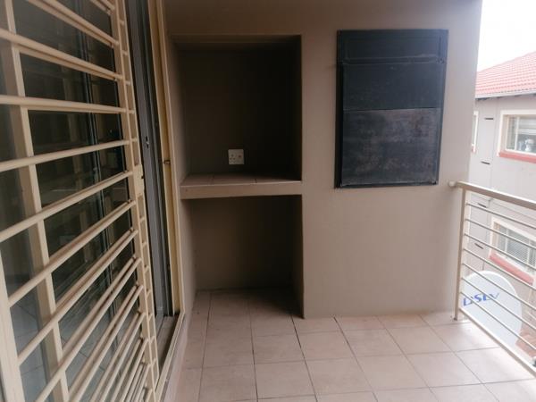 Property features a spacious open-plan living area leading onto a private balcony with build in braai, perfect for relaxing and entertaining. Modern kitchen with ample cupboard space and room for 3 appliances. Two well-sized bedrooms with built-in wardrobes. Neat, full bathroom with bath and shower.