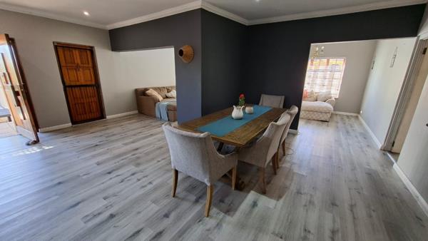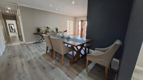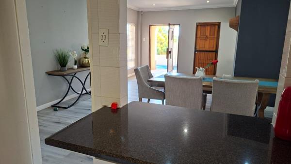 This beautiful and spacious 4-bedroom, 3-bathroom home (with 2 en-suite) offers elegant, modern living in a peaceful cul-de-sac. The home boasts uniform flooring throughout and features a generously sized open-plan layout, including a lounge, TV room, and dining area. The well-appointed kitchen offers ample cupboard space, appliance connections, and a separate laundry area. A splash pool, built-in braai, and breathtaking views complete the outdoor spaceperfect for relaxing or