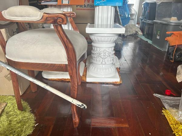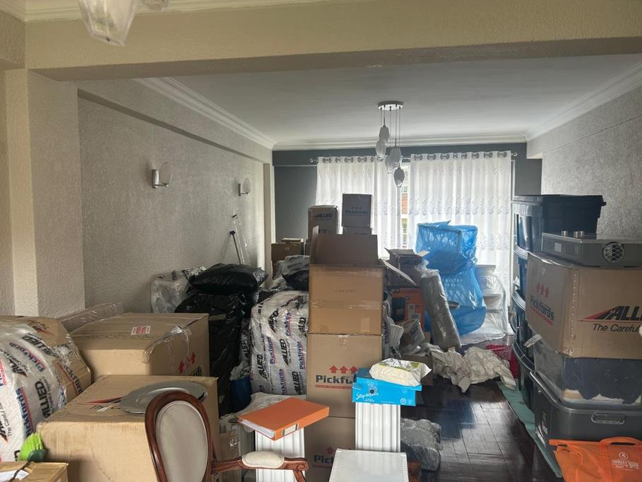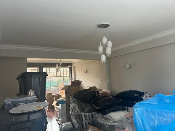 Inside, the apartment features a thoughtfully designed open-plan layout, encompassing one spacious bedroom, a single bathroom, a comfortable lounge, and a dedicated dining room, alongside a functional kitchen. Architectural details such as crown molding, modern chandeliers, and special lighting fixtures add a touch of elegance. Dark hardwood flooring flows through key areas, while large windows ensure abundant natural light, creating a bright and airy atmosphere. The space, currently awaiting your personal touch, offers immense potential for customisation.
