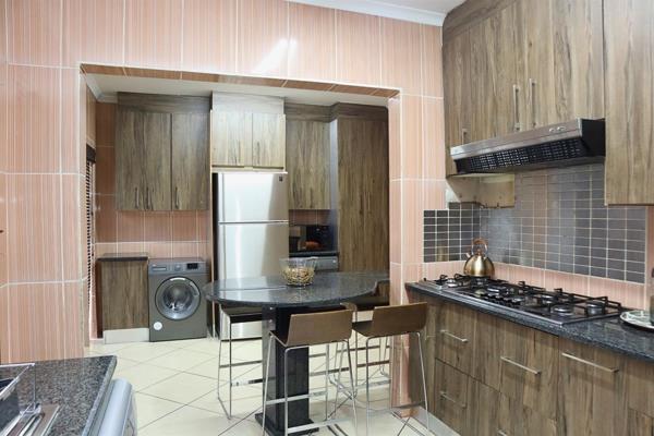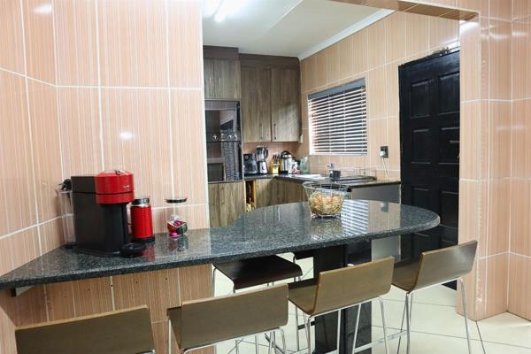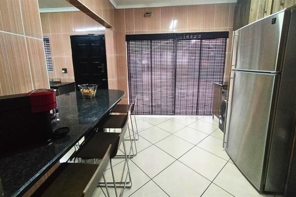 The heart of the home features a beautifully designed open-plan kitchen equipped with modern amenities, including a gas hob, eye-level oven, and granite tops, making it perfect for culinary enthusiasts. The kitchen flows seamlessly into the dining room and lounge, creating an inviting atmosphere for family gatherings and entertaining guests.