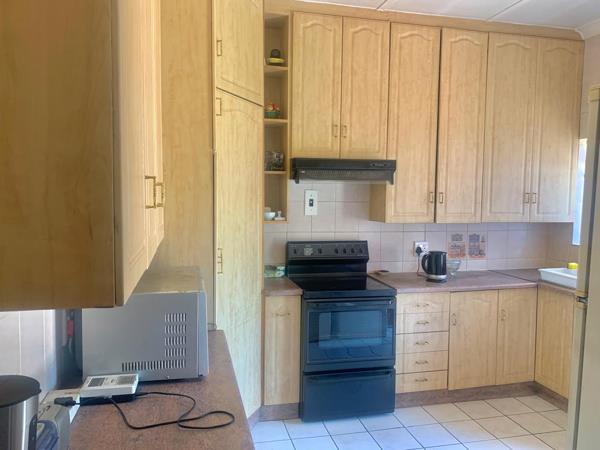The home offers three well-sized bedrooms with built-in cupboards, a full bathroom, a spacious lounge and dining area, and a modern kitchen designed for everyday convenience.