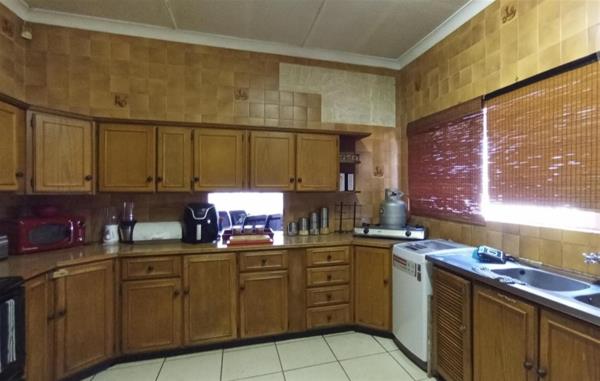 The main house features 389m² of living space that includes three well-sized bedrooms with parquet tiles and built-in cupboards and two tiled bathrooms. The spacious north facing lounge offers a cozy anthracite fireplace and access to the front patio and the dining room with wood cladding. The kitchen has ample work and storage space, space for a fridge and wet appliance and a stand-alone stove and scullery area. From the kitchen there is a hatch to the dining room and also access to the back courtyard with an undercover patio, garden and double staff accommodation with a laundry area. The property also offers a single garage and additional parking for family and friends. Security at the home includes an alarm system not activated, beams inside the house, burglar bars on all windows and safety gates on all exterior doors as well as an automated gate. The property is fibre ready.