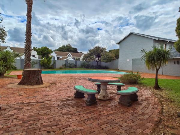Parking allocated for two vehicles garage and a covered carport There is a lovely communal swimming pool and braai entertainment area in the complex. Ample visitors parking available. Electricity is prepaid.