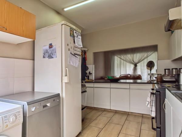 Tiled throughout. The kitchen has loads of cupboard & counter-space and plumbing for two appliances. Kitchen leads out to an enclosed courtyard washing line area. Entrance hall as you enter the unit. Spacious, sunny lounge leading out to a covered patio overlooking the units private, enclosed garden with a pedestrian gate. Separate dining room. The three decent-sized bedrooms are upstairs. Spacious main bedroom with a walk-in-closet and en-suite bathroom with a bath. The second and third bedroom share the second bathroom which also has a bath.