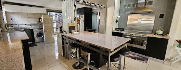 The Large kitchen has 2 seperate Gas hobs with a 4 burner glass electric stove in the centre.