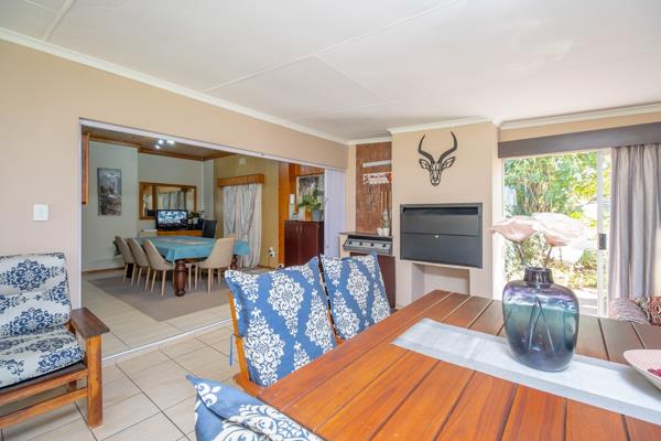 Entertainment area with fireplace, and built-in braais, leading out to a sparkling pool, for year-round gatherings.