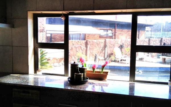 Enclosed lapa with built-in braai overlooking a sparkling swimming pool perfect for hosting family and friends