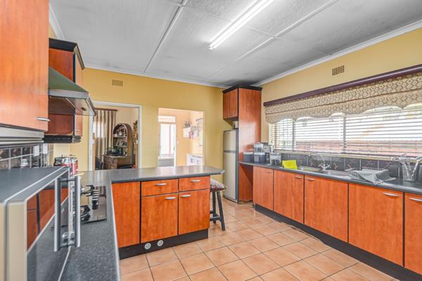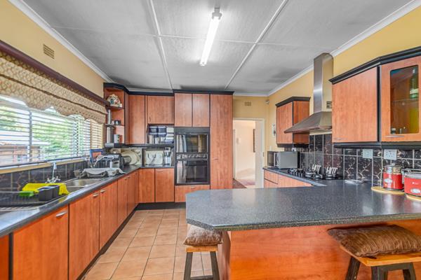 A spacious, well-organised kitchen with stone tops, ample cupboard space and a separate scullerywash area