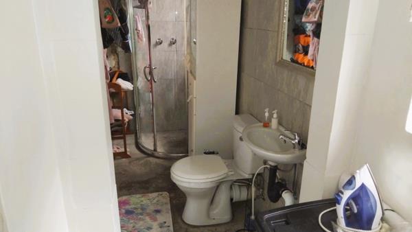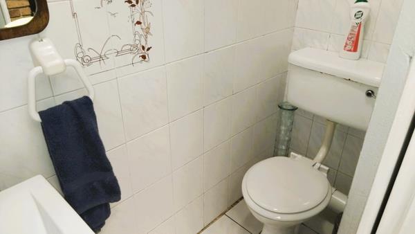 All four bedrooms include tiled floors, built-in cupboards, and curtain rails. Three bedrooms are situated upstairs and share a full bathroom. The ground floor adds further convenience with a guest toilet, as well as an en-suite bathroom with a shower, basin, and toilet connected to a private studyperfect for working from home.