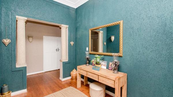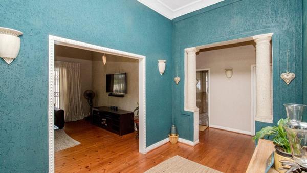 Entrance hall with high ceilings that leads to open plan lounge and dining room.