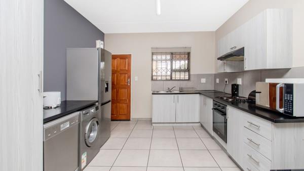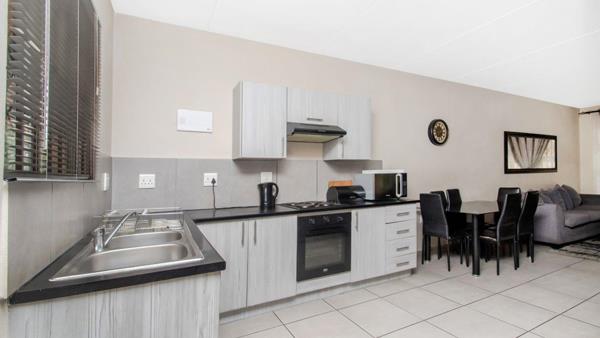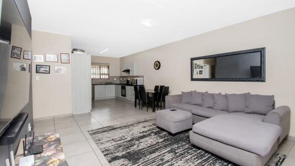 Open plan lounge, dining room and kitchen with room for all appliances.
