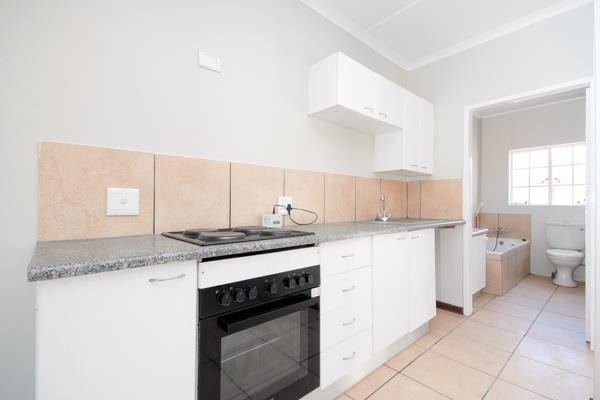 The well-appointed kitchen provides space for Fridge and front loader wash machine