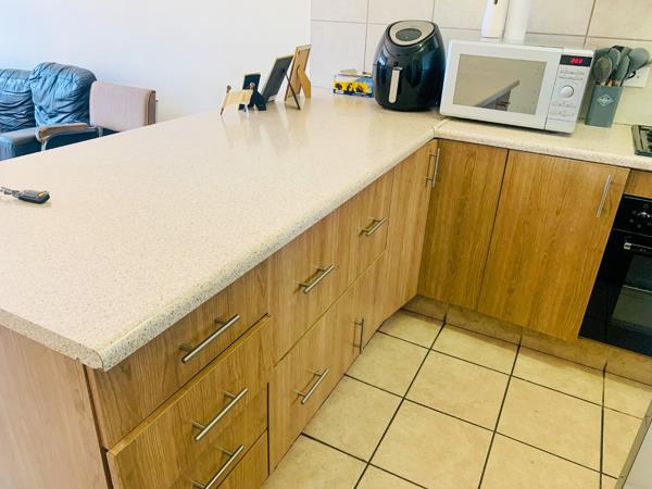 Open-plan lounge and kitchen, offering a functional layout and ample cupboard space