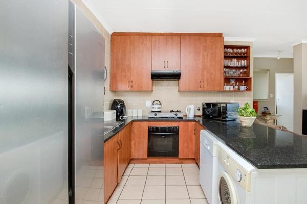A fitted kitchen with granite counter tops, hob and oven as well as space for 2 undercounter appliances.