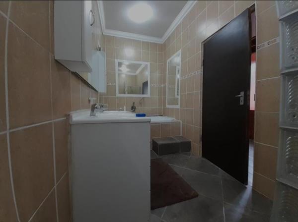 Inside, the home boasts a main bedroom with a full en-suite bathroom (shower and bath), built-in cupboards in all bedrooms, and a fully fitted kitchen. A second full bathroom offers added convenience for the rest of the household.