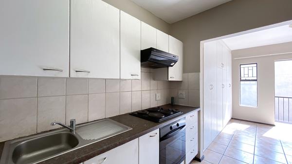 This bachelor unit ushers you in through a well fitted kitchen with lots of cupboards space that is open to a comfortable sleeping area.